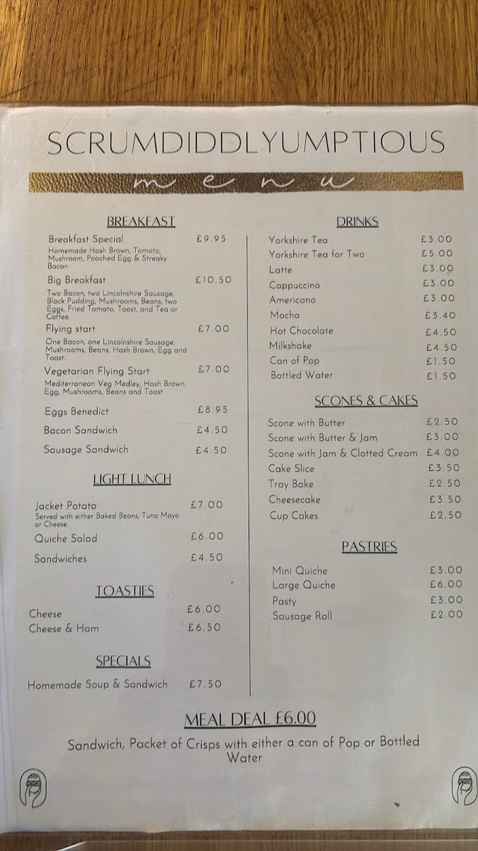 Welcome to Scrumdiddlyumptious, a charming café nestled in the heart of Flamborough. Known for its warm ambiance and friendly service, this spot is perfect for breakfast lovers and casual diners alike. The menu features a variety of delectable options, including breakfast wraps, freshly made sandwiches, and light lunch offerings that are sure to delight your palate.